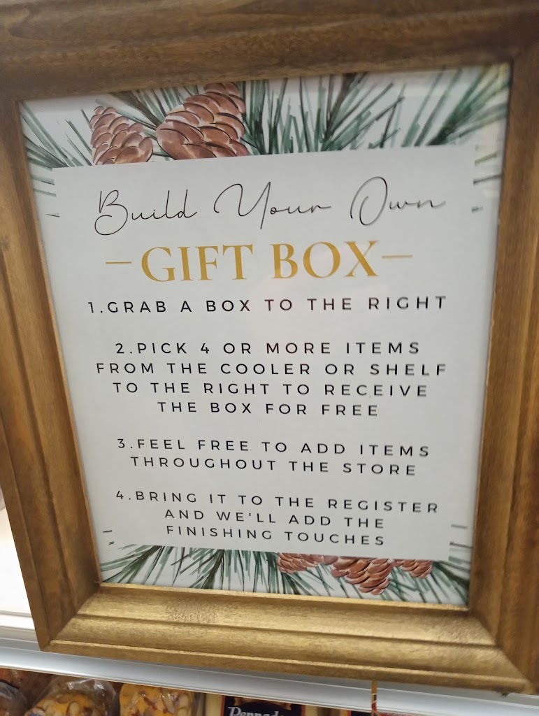 They have cheese, wine, crackers, ice cream and so many nice gift items. Cutting boards and coffee cups, shirts and candy. Did I forget fudge!