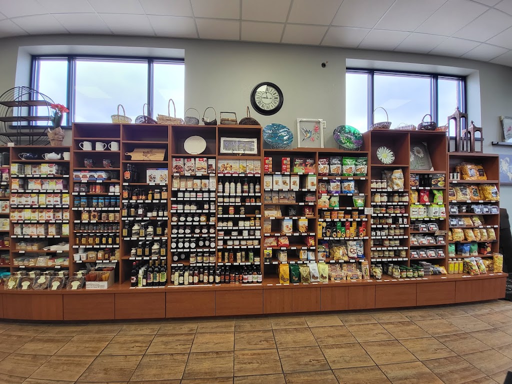 Every cheese you could want, plus some. And crackers, dip mixes, jams, jellies, sauces, utensils, and cute stuff.