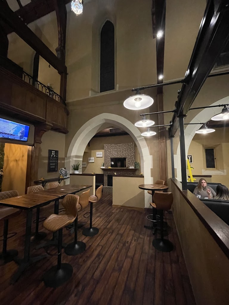 What atmosphere! What a great and varied menu! Inside a former church. You have to see the inside to appreciate what they have done with the space! We had four different items off the menu and all were excellent!
