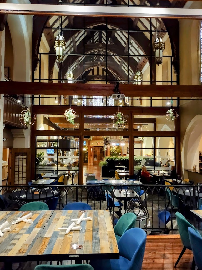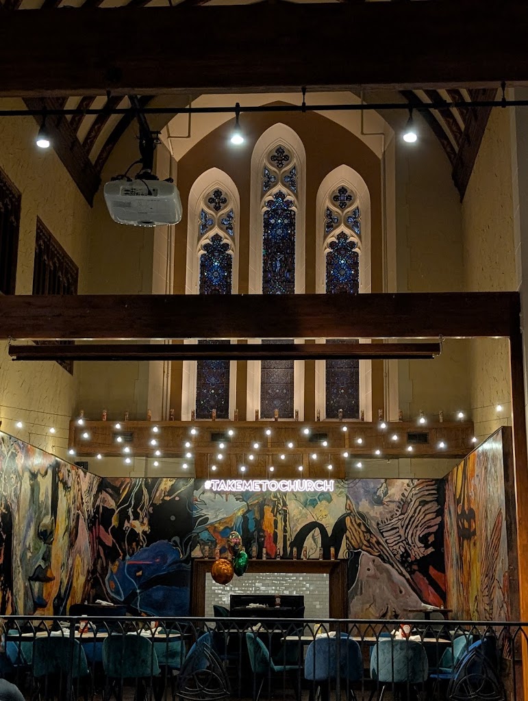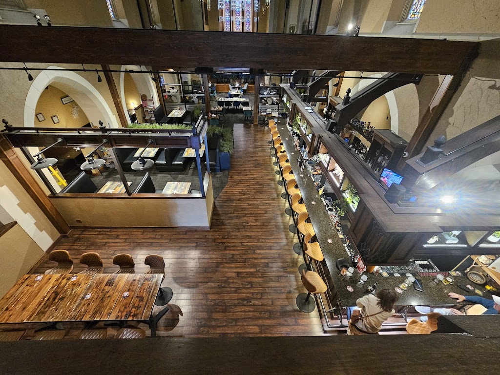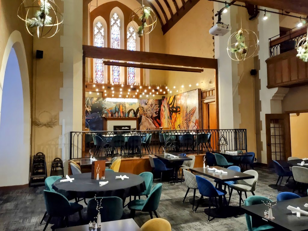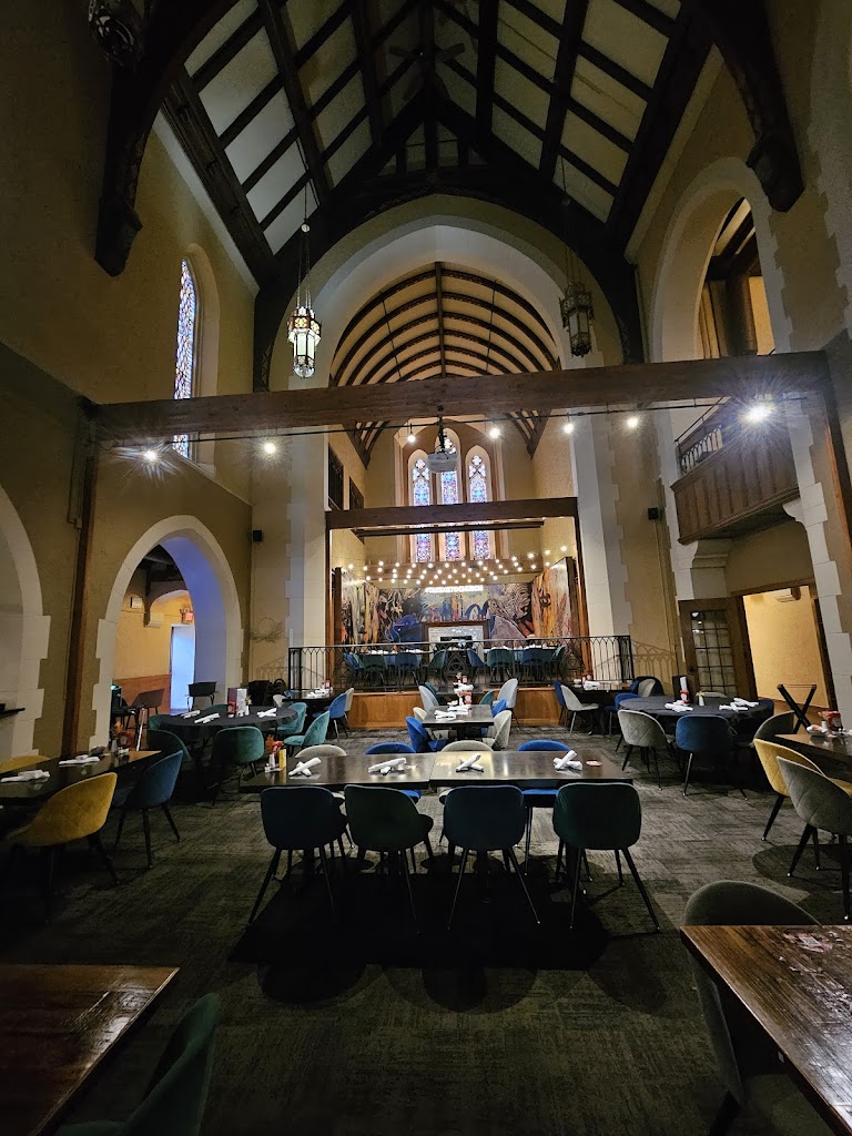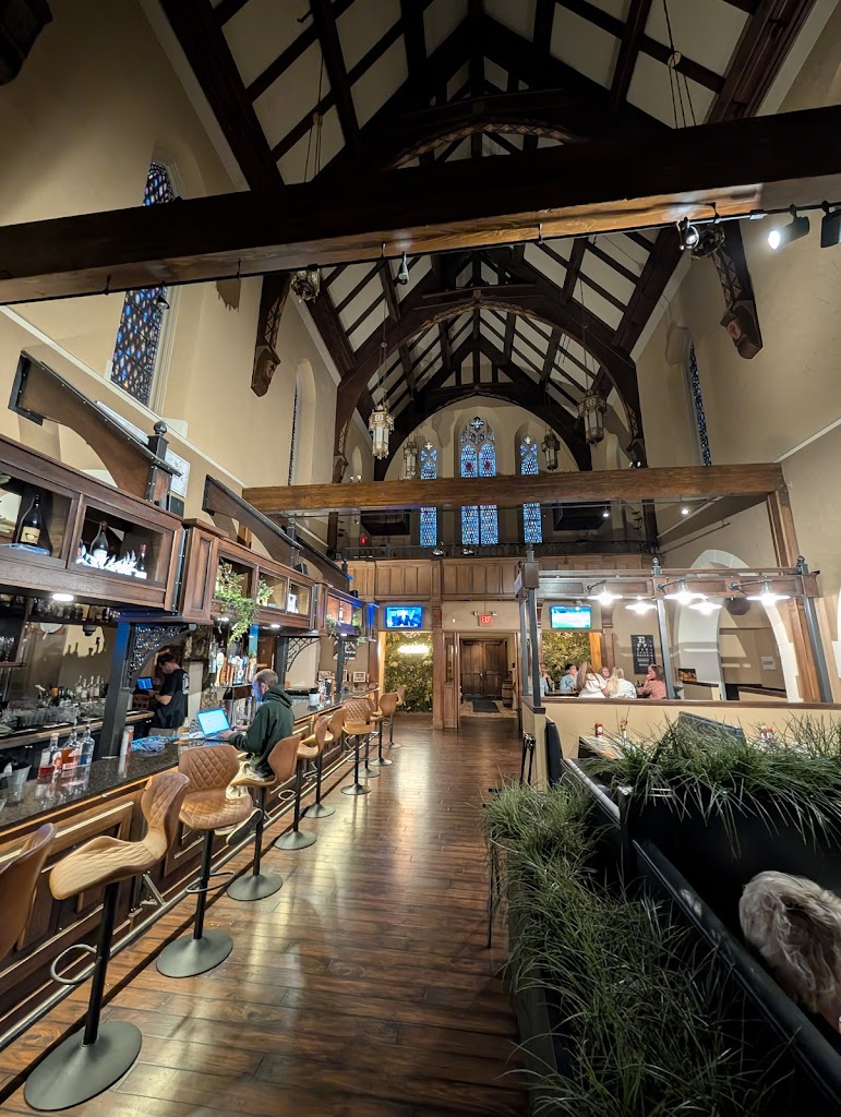 Old Lutheran church turn restaurant. Such a cool vibe. Great food options.