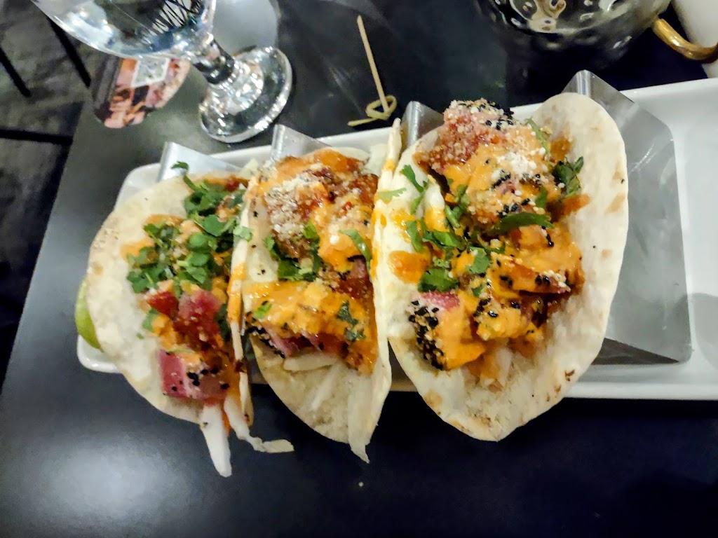 The venue itself is unique and worth a visit. Great tacos, good salad, mediocre hummus platter. Having menus available only via smart phone is annoying. Overall, a good experience and would return if I lived in the area.