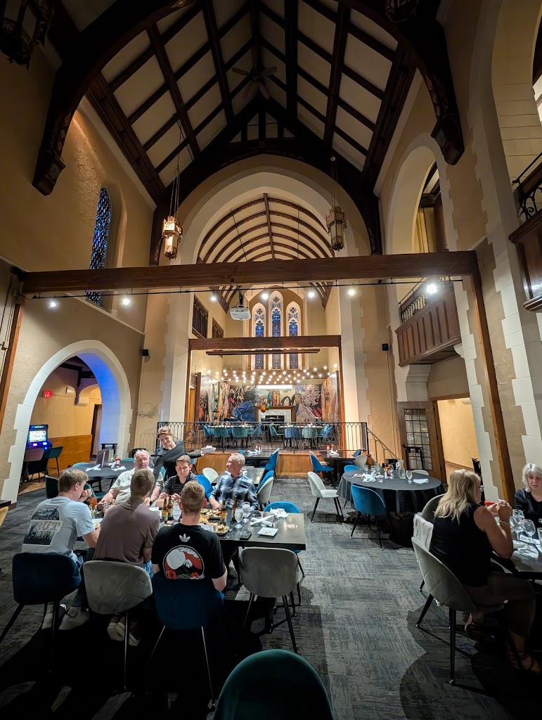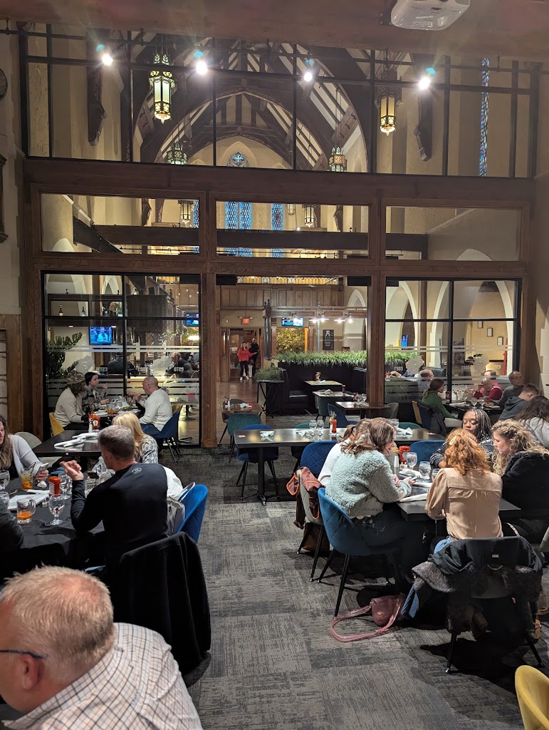 We met friends here for dinner. The restaurant used to be a Church. It's a great building, good service, food and atmosphere. Thank you.