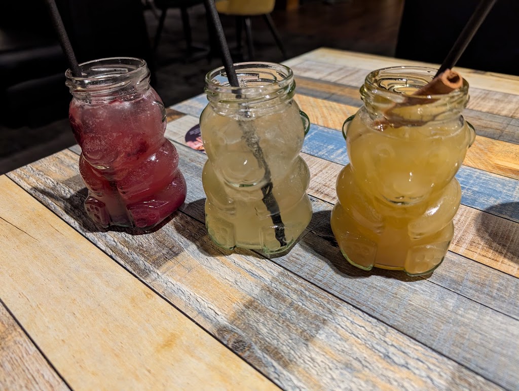 The food was the highlight. I would skip the cocktails and just have wine or beer if we decided to visit again. My Bloody mary was very watered-down tasting, and the berry mule was OK, but the glass was the best part, served in a bear shaped glass.
