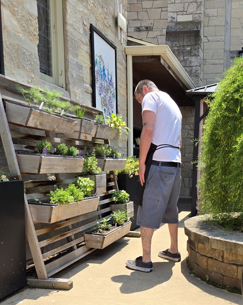 Fabulous, large patio & such flavorful dishes in a unique & beautiful setting, inside & outside. Great to see the chef grabbing fresh herbs grown on their patio.