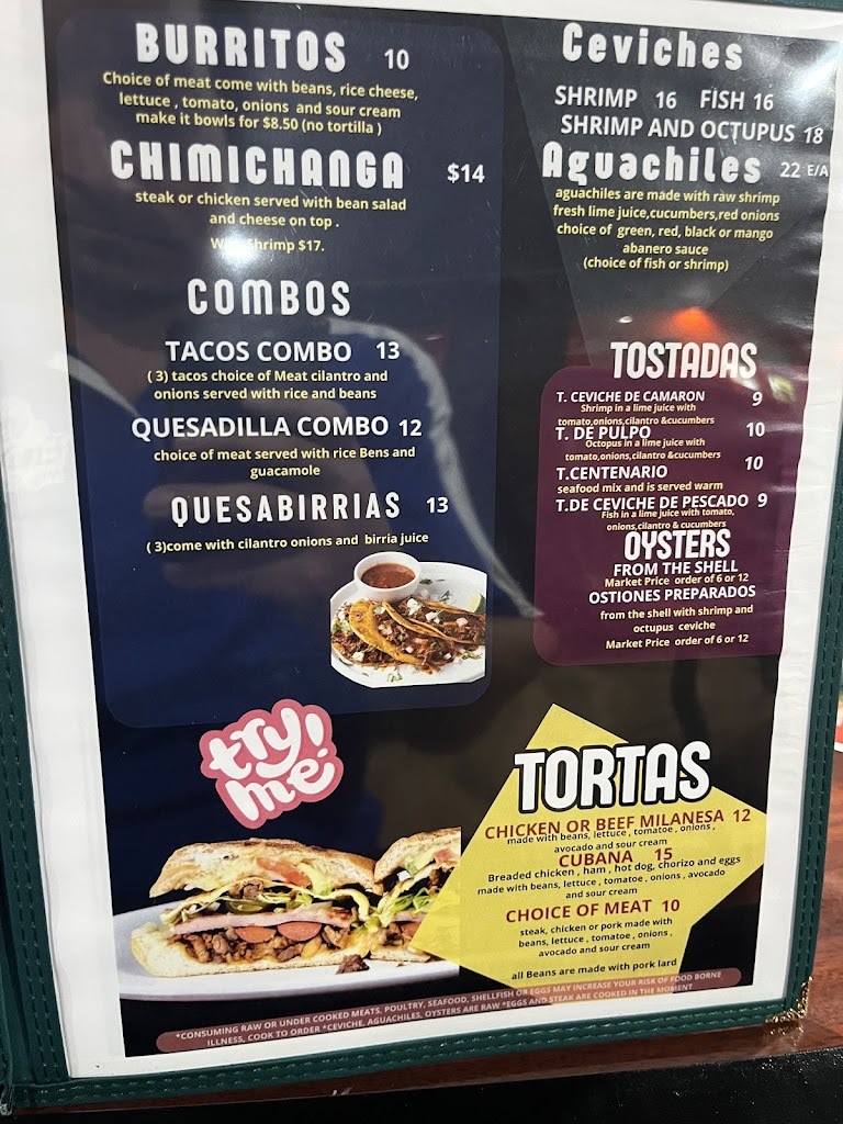 First time dining. Food is great! We had quesabirria and torta cubana, and the portion sizes are massive - we each will get two meals out of it. Attentive and friendly service. Already planning on returning!