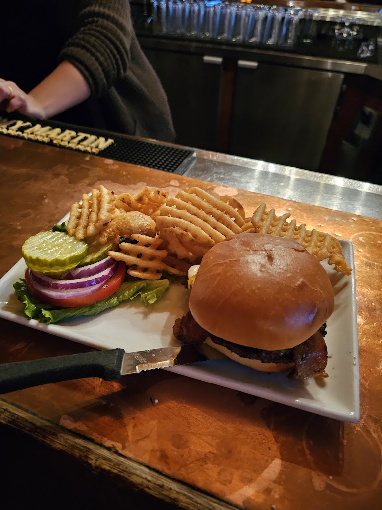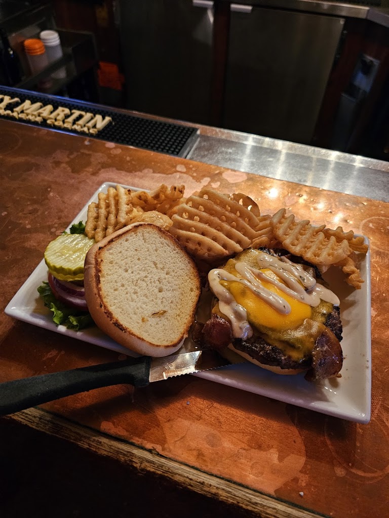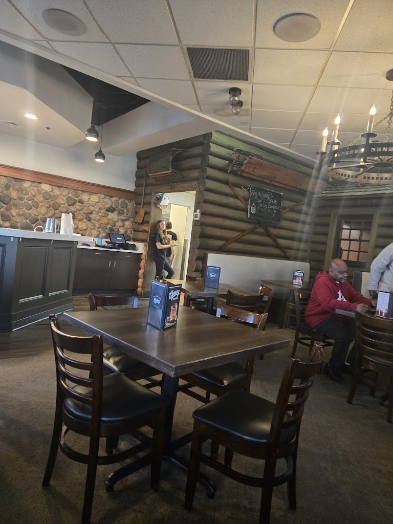 Cool bar area feels like you're in a log cabin. TVs with games on in the bar area. The burger I had was great, waffle fries were good too.