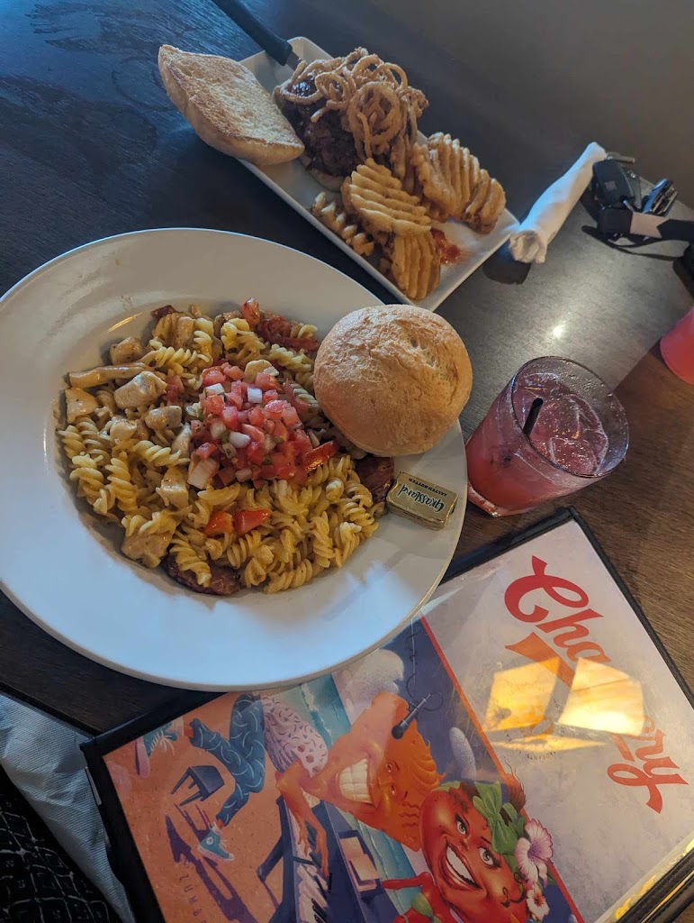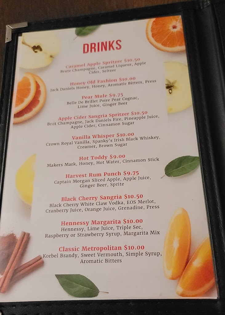 Drac's Juice cocktail was very tasty! Cherry Root Beer BBQ was delicious! Seemed a little chilly where we sat, but nothing horrible. Servers were friendly and checked in regularly.