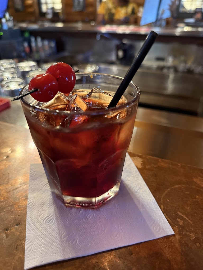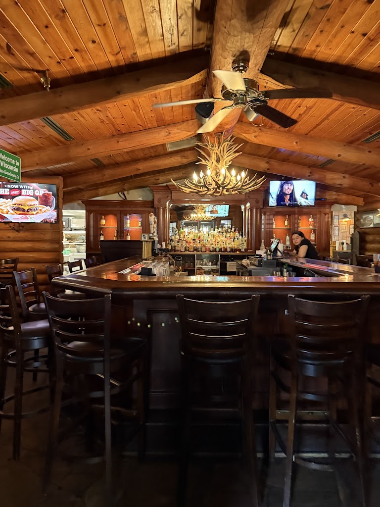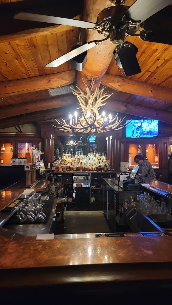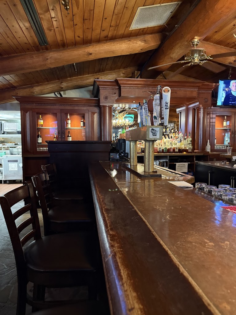 A relaxing wood horseshoe bar set in a western-style lodge setting. Friendly bartender and busy lunch atmosphere. Diverse clientele and easy vibes. Nice strong Manhattan cocktail set the tone.