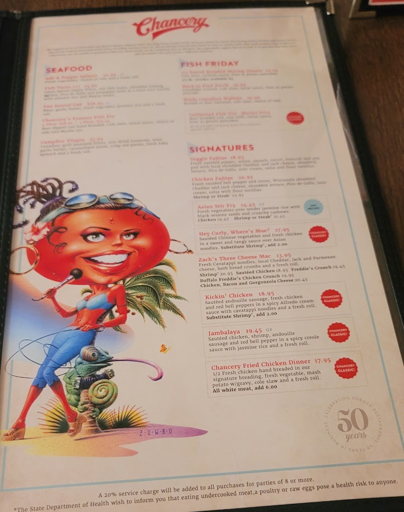 Went to what I believe is the last Chancery in the Milwaukee area(Mequon). I’ve long been a fan and I wanted to see if they still had a version of Chicken Kick on the menu…they do…it’s now called Kickin’ Chicken but I saw the Friday special which was an all-u-can-eat Fish Fry…the fish was delicious and the waffle fries were the perfect complement and it also came with a small ramekin of coleslaw…I had two portions and was served by the most delightful young lady…all-in-all a really satisfying meal…keep up the good work!