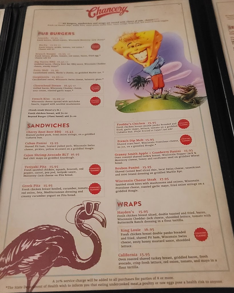 It is sad that this is the only remaining Chancery location. Was glad to stop in while passing through the area. The food was well prepared and enjoyable. Cherry Root Beer BBQ pork sandwich was very good. Onion strings and chicken sandwiches were also good. Recommend stopping in the Mequon area.