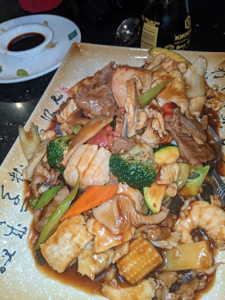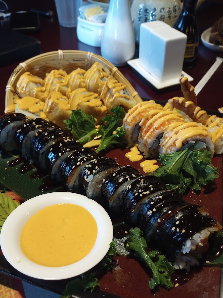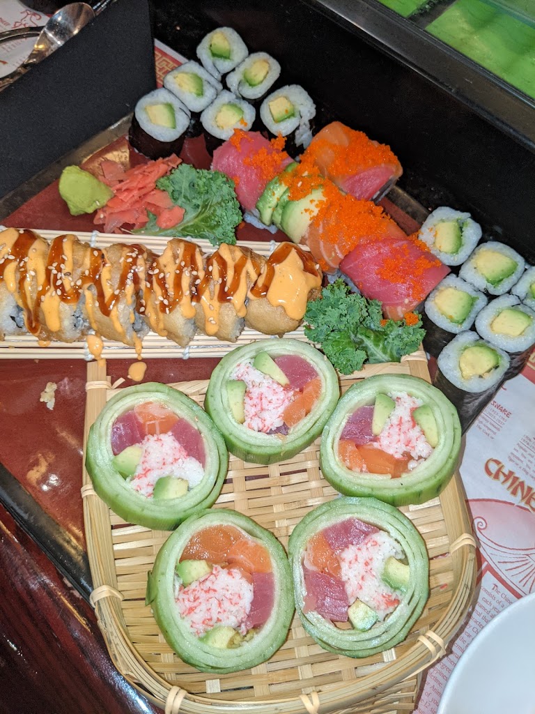 Had some fantastic food. We got 3 different sushi rolls, a giant platter as an appetizer,a bento box, the duck and szechuan beef. All of the food had plenty of vegetables and meat. It doesn't matter what style your eating it. Whether it be dine in, take out, or delivery it will be delicious. As for the servers they were amazing as well. Not only was our server nice, well mannered and attentive but so were the other servers I saw. I would rate higher if I could but I can't. Next time I'm in the area I will be coming here. It can be a bit pricey if you wanna try a few things but if your going for a meal look no further.