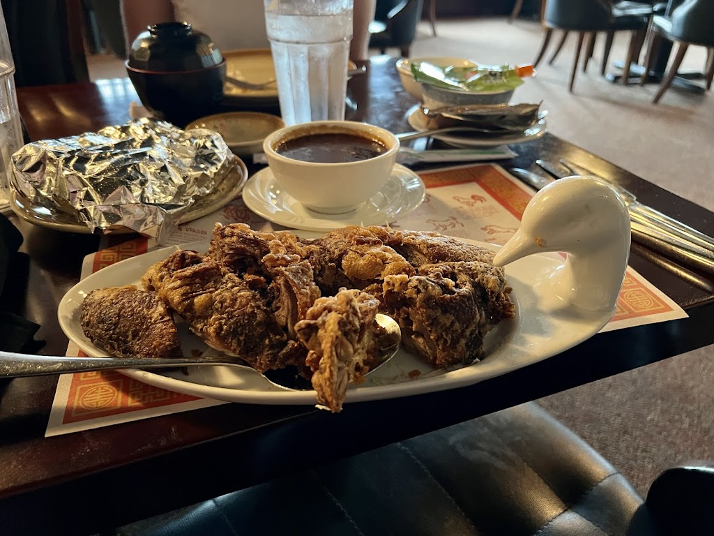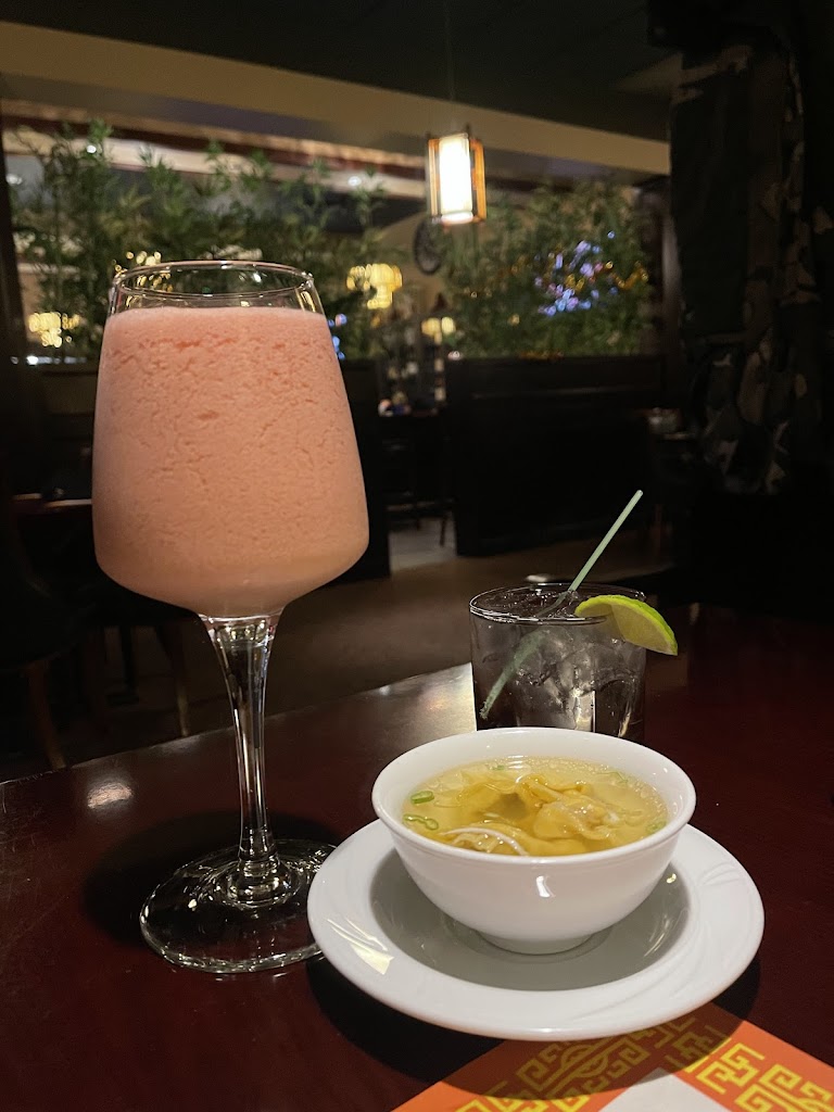 The first problem we encountered was the menu. It was extremely difficult to read. It had a dark background with light print, and there was a shiny surface on it that was reflecting all the lights. The print was quite small, too. So, we had some questions. I am a Pescatarian and was trying to find out which soups had meat in them. We asked the waiter, who is an older man with a raspy voice if there were any soups without meat. He said the wonton soup didn’t have any meat in it. I asked if it had a meat broth. He said something snarky that I can’t remember. He finally admitted that it was made with chicken broth. Again, I asked if there was any vegetarian soup. He wasn’t sure. I asked if he could go find out. He gave me a disgusted “ yeah, I can do that”answer.