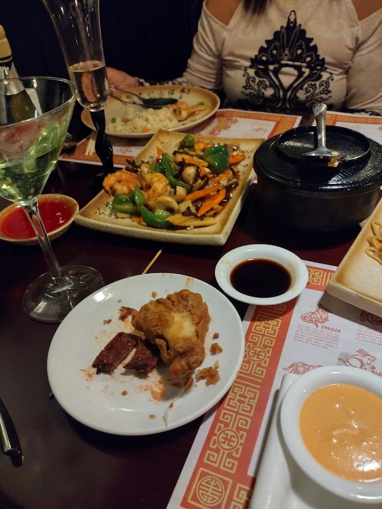 Food was great, service was a bit slow. The food was worth the wait. The bacon wrapped shrimp was great as was the egg drop soup. I had the house egg foo young and it was also very good and filling. It was very dark inside, but pleasent to dine in.
