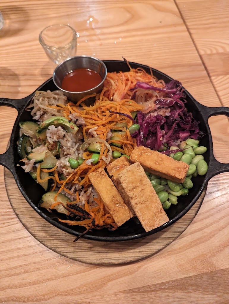 Nice place with nice people but overall experience was terrible. By the time my meal arrived, other table mates were done and was too hot to eat for at least 10 more minutes. Ordered $23 gikoba crispy tofu but there was zero crisp, no veggies (not described but still expected), no peanuts, and so much sauce. Also had two $12 palomas but did not taste or feel any alcohol. I will not be back.