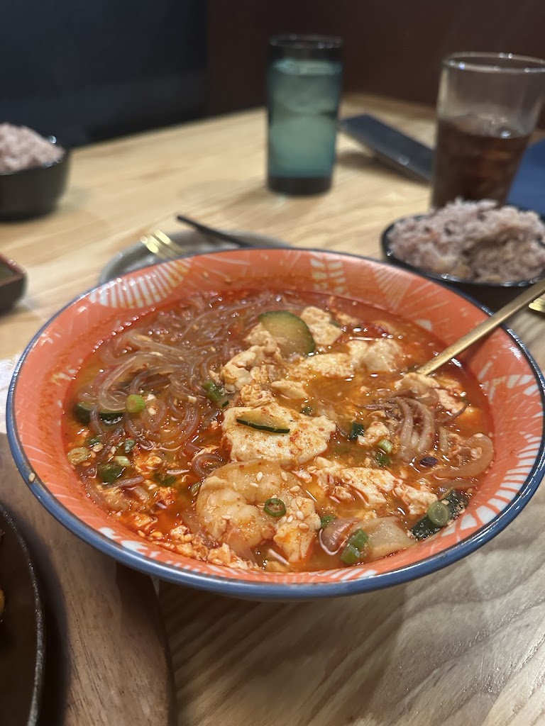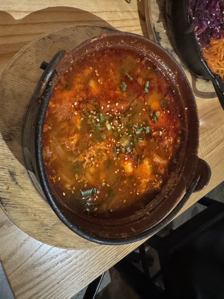 Really good kimchi. Our server was delightful & the atmosphere is cool!