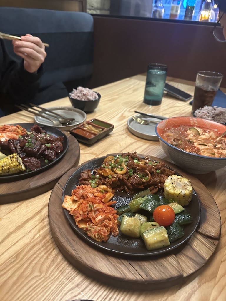 Went for dinner around 5pm on a Thursday. Only one other table (of 6) was there. Service was excellent. Food came out in a timely manner. Had the dumpling, pork bulgogi and stir fry glass noodles (japchae basically). Dumplings had a weird sauce on them that didn't hit it off for me. Pork bulgogi was very good. The noodles where decent but a bit to much soy sauce. Prices are fair for the area. Building is really nice.