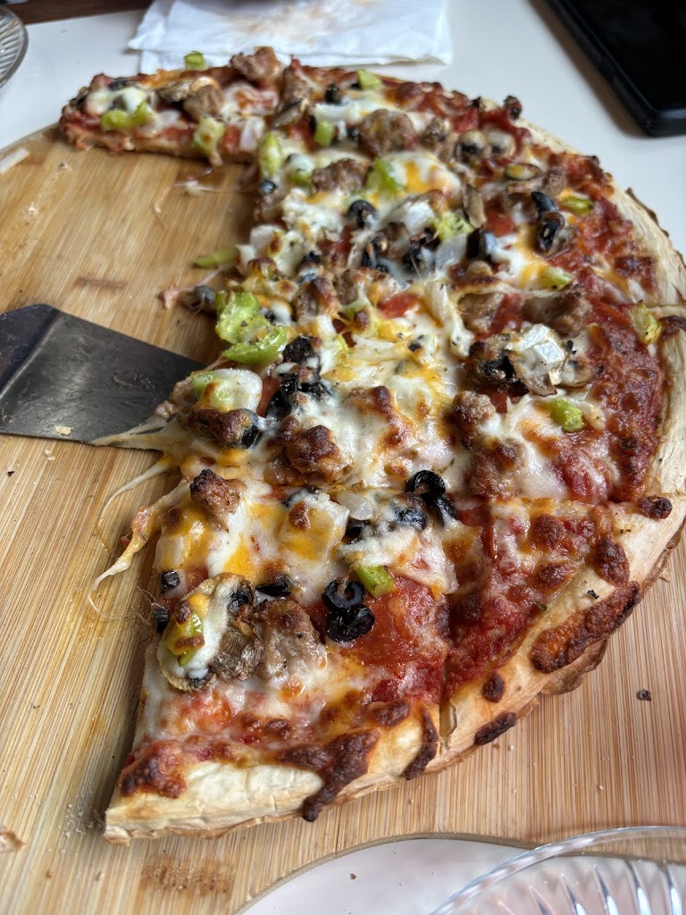 Great Pizza! Wonderful service! Quiet and refreshing place to sit down and have a fulfilling meal! We also ordered the 3 combo appetizer and were pleasantly surprised at the amount of food we received!!!!! Ashlee T. was a fantastic waitress and checked on us frequently. We hardly waited for our food!!!!! We will DEFINITELY BE BACK !!!!! By the way, we started eating before I took the pictures, we were starving!! But it was a LOT OF FOOD before we started eating!!!!! Ten stars!!!!!⭐️