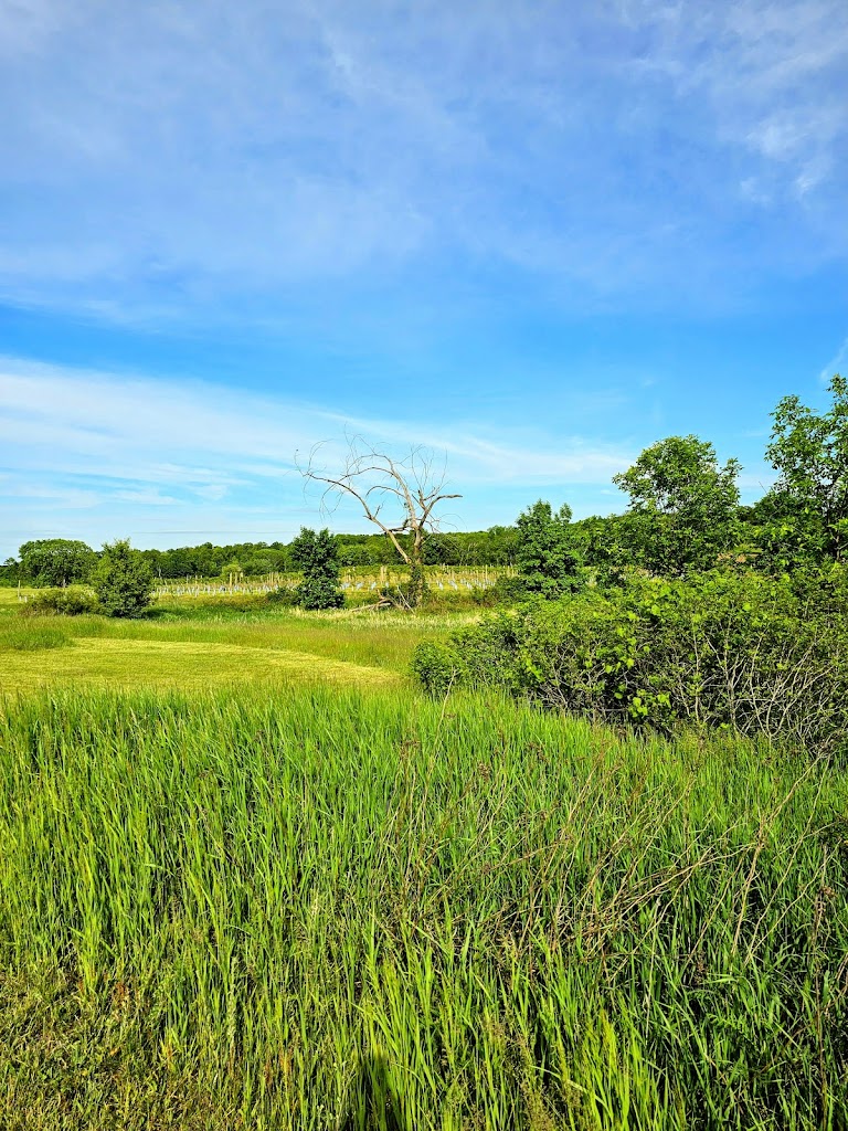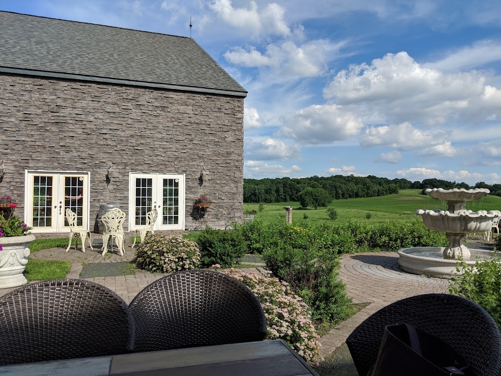 We came here very early, almost as they opened. I thought it might have views of the river. It does not, but it has views of vast fields and the vineyard. We didn't stay indoors because it was a gorgeous summer day but theybhave a nice dining room inside befitting the "chateau" name. Outdoors, they have a patio up front and a covered dining area in the back, where we chose to plant ourselves.