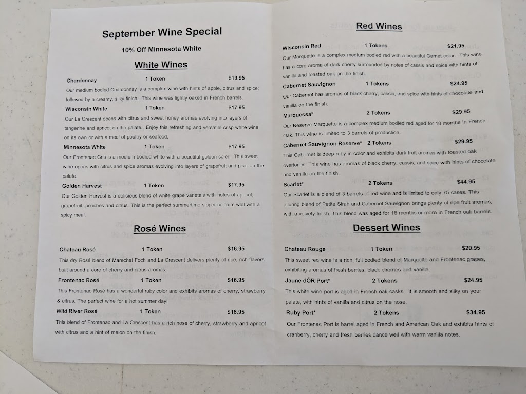 Wonderful wines. We have tried most of the wineries in the area, but these wines as a whole are the best. Other than dry red wines, they have about everything else that would fit the palate. The service was very friendly and informative. The best winery in North Western Wisconsin.