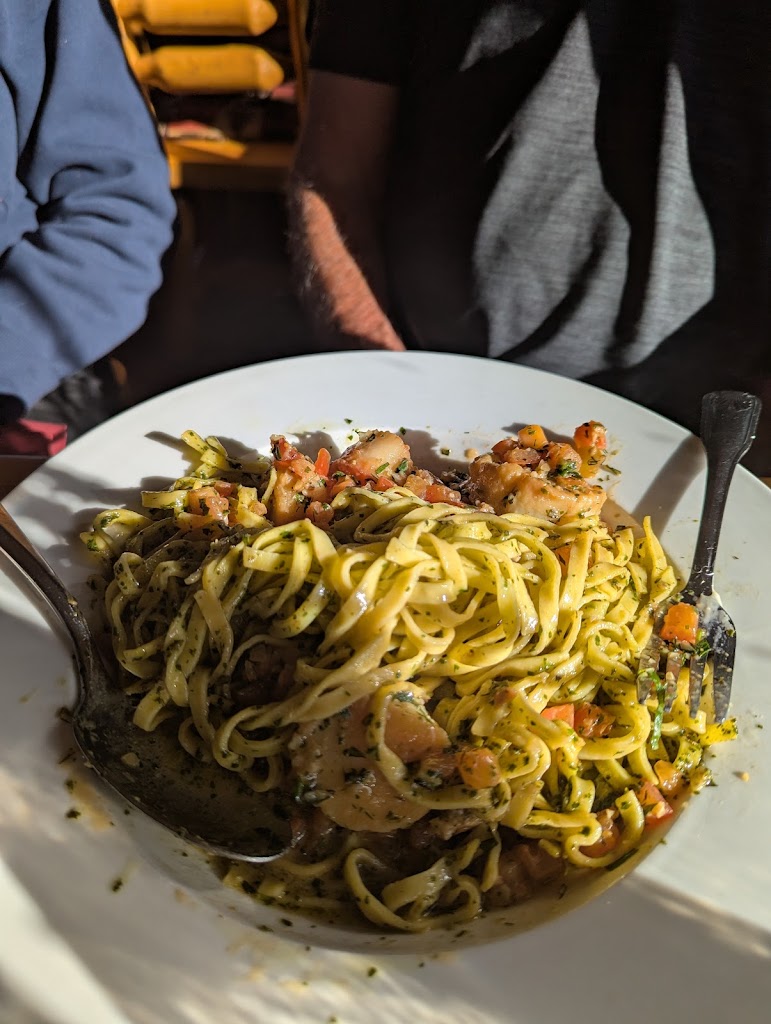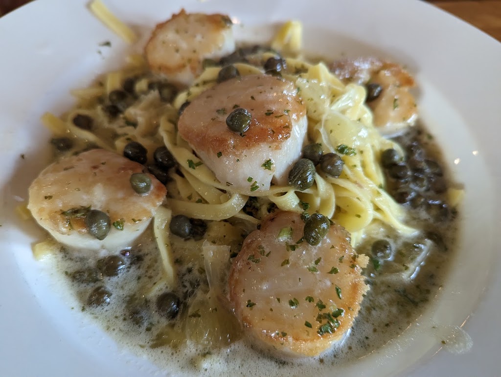 2 out of our 3 meals were amazing. My scallops were soft and buttery but my linguine was swimming in oil and the pesto/ herbs were very bitter. I had all of our party try it. The waitress apologies. I sent the pasta back. No adjustments were made. Great scallops though.