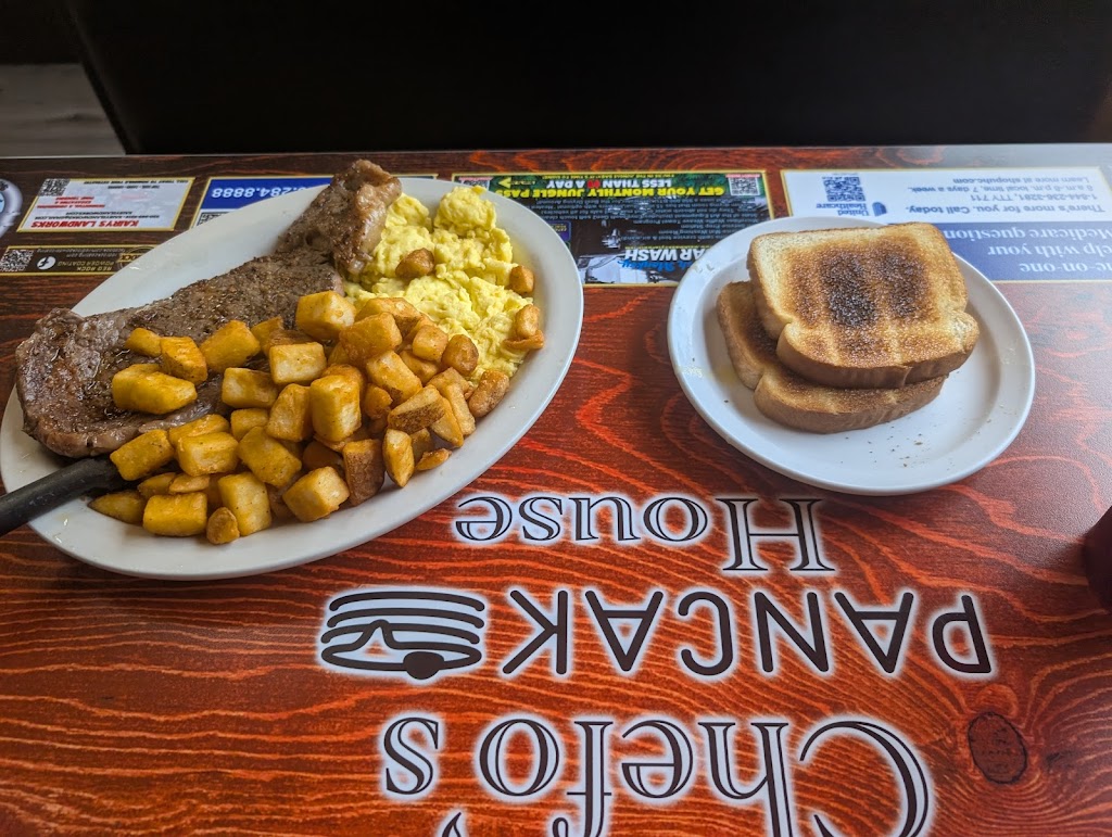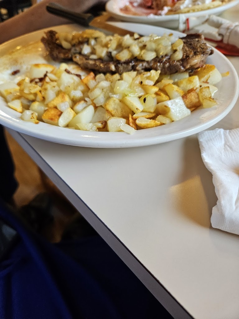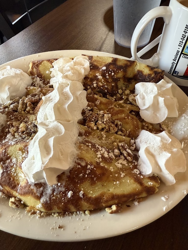Big on portions, big on flavors, big on service! After a Google search for breakfast places, our search brought us here. Huge menu…there’s something for everyone. My husband ordered the breakfast burrito and he said it was the best he’s ever had! I had the crepes breakfast combo and was allowed to upgrade (for a small charge) to the pecan crepes. The prices are the best value around! We will definitely be back!