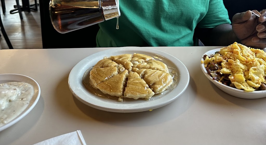 Laid back, clean, and friendly. Booth seating plus tables, hostess was super nice and attentive. The menu offers plenty of delicious options, Fluffy biscuits, crispy American fries, The cinnamon apple pancakes had me practically licking the plate! The apples are fresh and not canned which I absolutely LOVED! The only downer was having half&half as the only creamer option so I'll bring my own next time😁