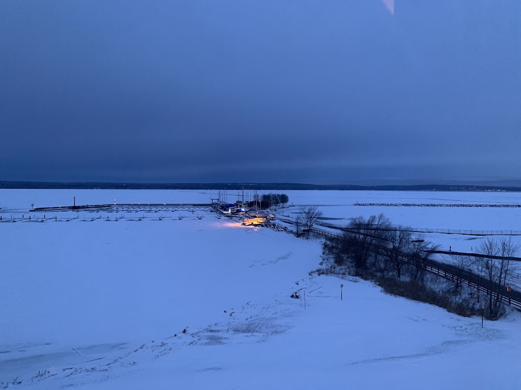 Got a smoked salmon and cream cheese on crostini starter and ate in our room enjoying the view of Lake Superior.