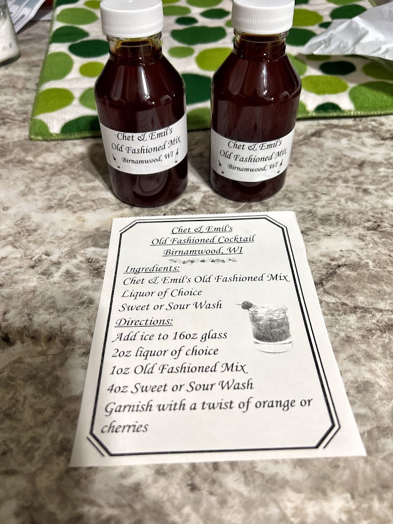 As Jenny and I walked out the door, one of our bartenders came out after us and handed us two bottles of old fashion mix, and a set of directions on how to make it the Chet & Emil’s way.