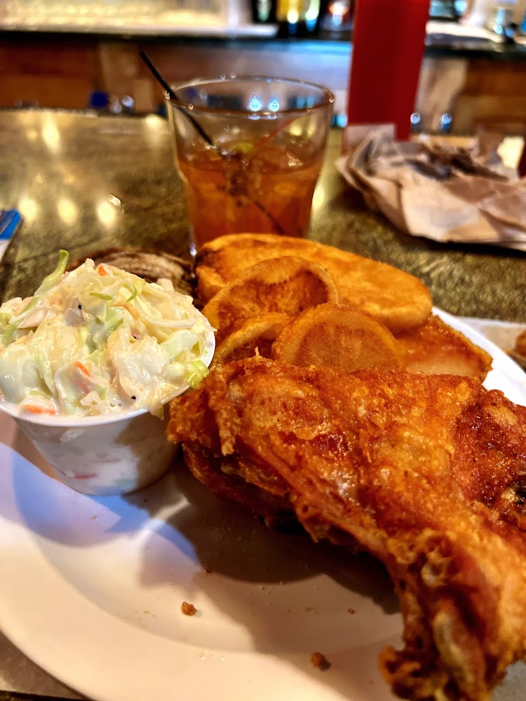 What’s not to like about a small town restaurant. My friends and I go often for chicken (of course) and great old fashions. One of our favorite places to hang. Staff is great!