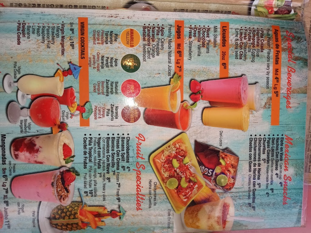 Good Mexican food awesome fruit bar and fruit drinks.