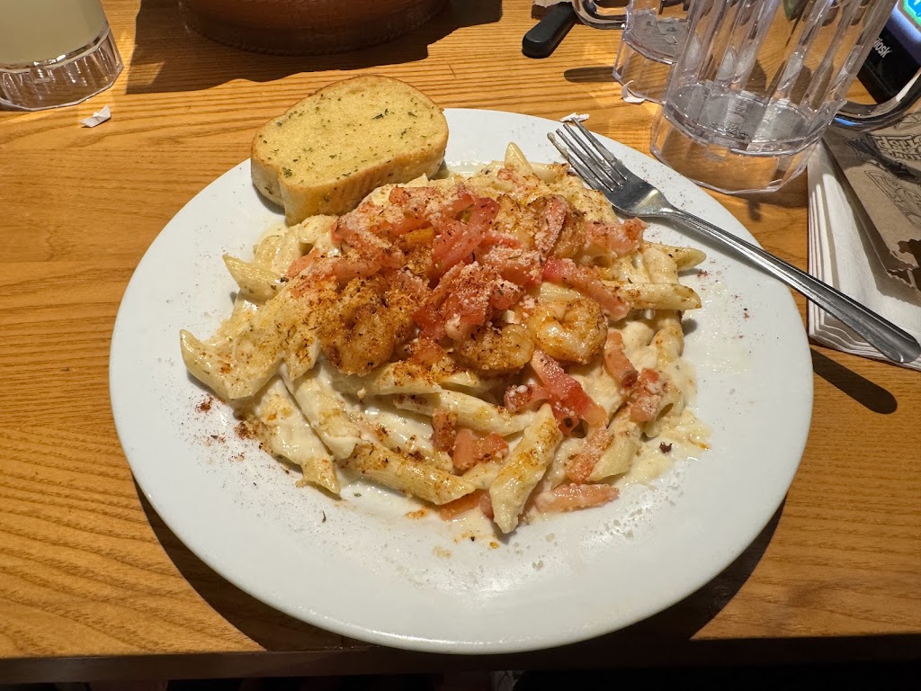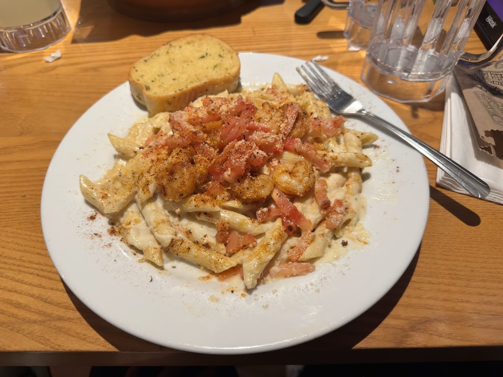 Andy (Andrew) - our server tonight - was awesome! So friendly and funny, continuously checked in on us, filling our drinks and making sure our food was to order! The food arrived quickly, and super tasty! My table ordered the brisket beef queso and chips, the chicken fajitas, brisket quesadillas, chicken bacon ranch quesadillas, cajun chicken pasta, and the ribs! Everything was great, no complaints!