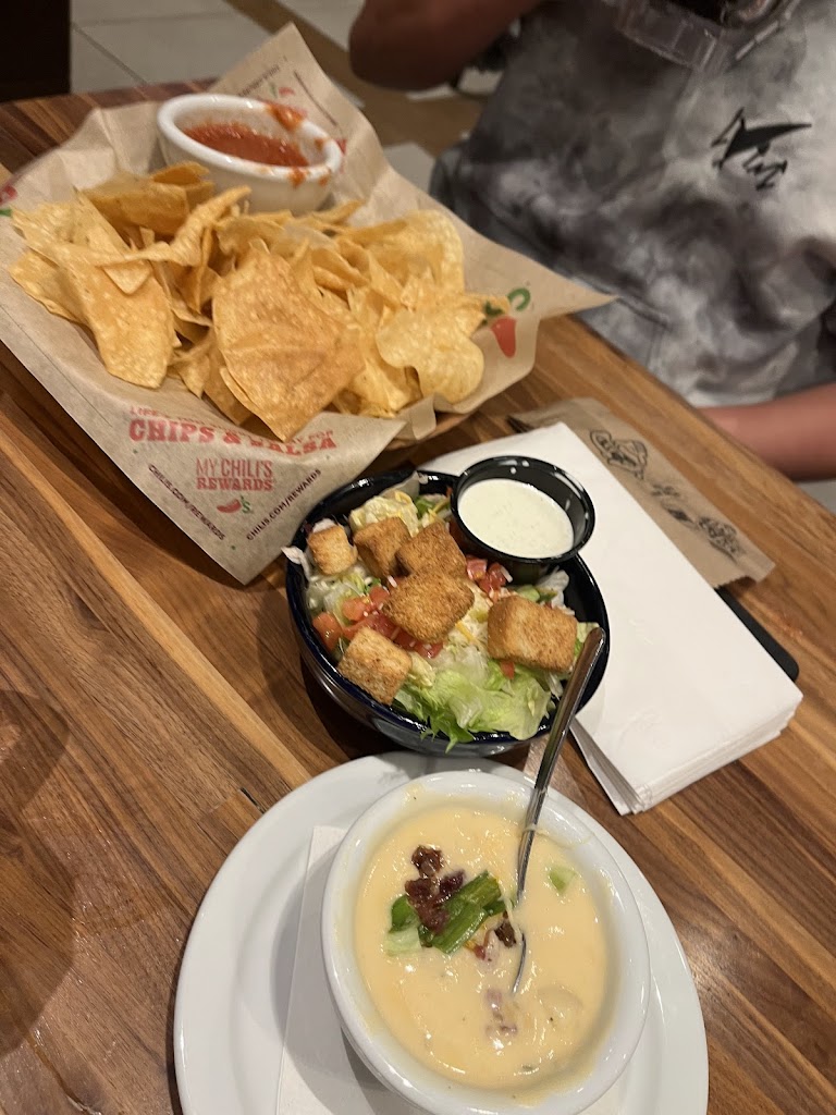 It’s an echo chamber. The materials in the room don’t help with the acoustics and it is nearly impossible to hear the people at your own table. It feels sterile and unwelcoming. It’s not at all your parent’s Chili’s.