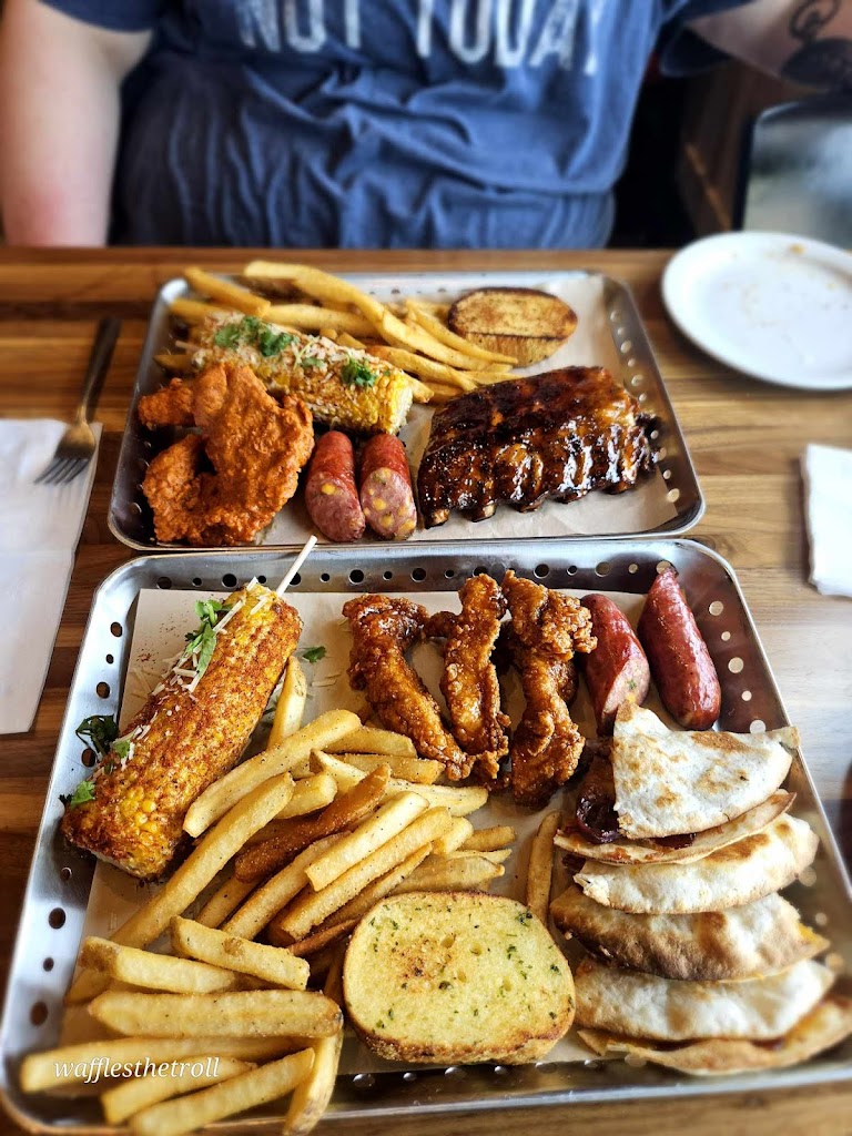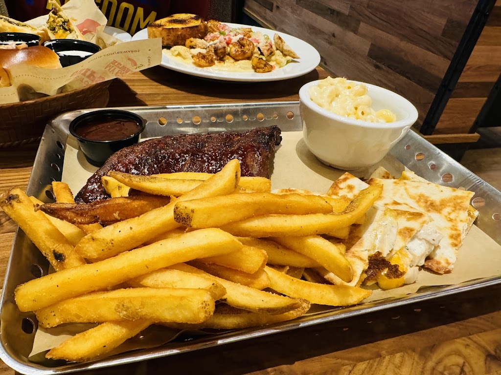 The fries were great, the mac and cheese was ok. My meat choices were: The jalapeno Cheddar sausage was good, the crispy chicken was good. The ribs were the star though. Cooked just right with a nice sweet bbq sauce.