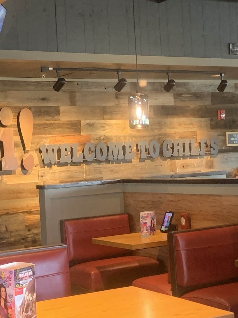 I love Chili’s so when you first go walk in there, you go to the bar or a drink whatever you want and then you are seated and they got really good food prices are iffy, but it’s OK