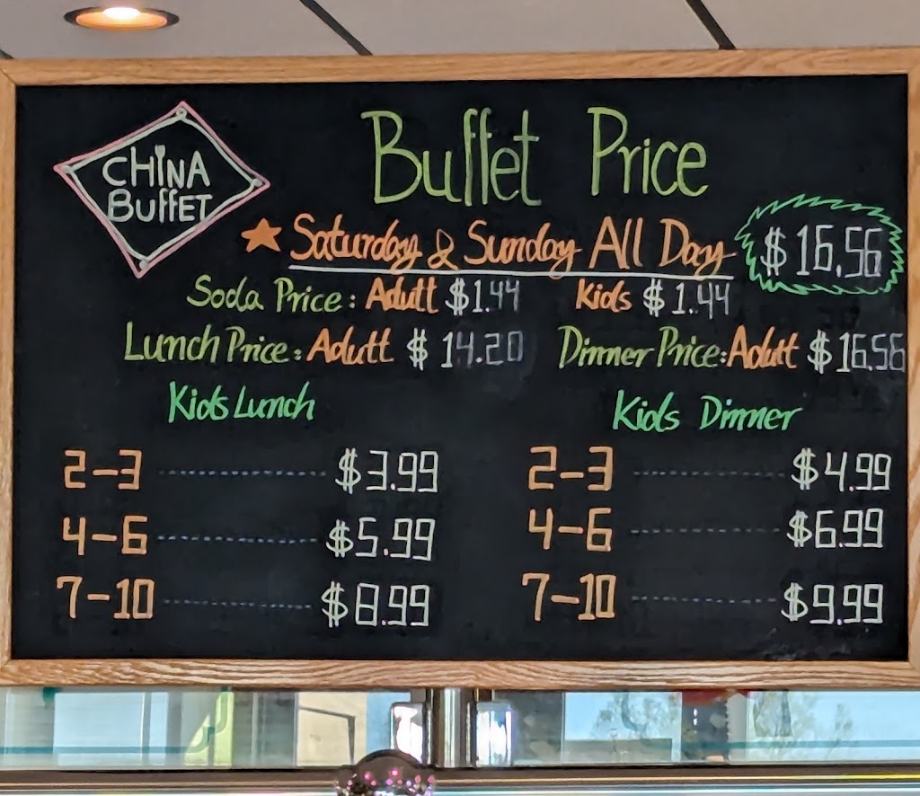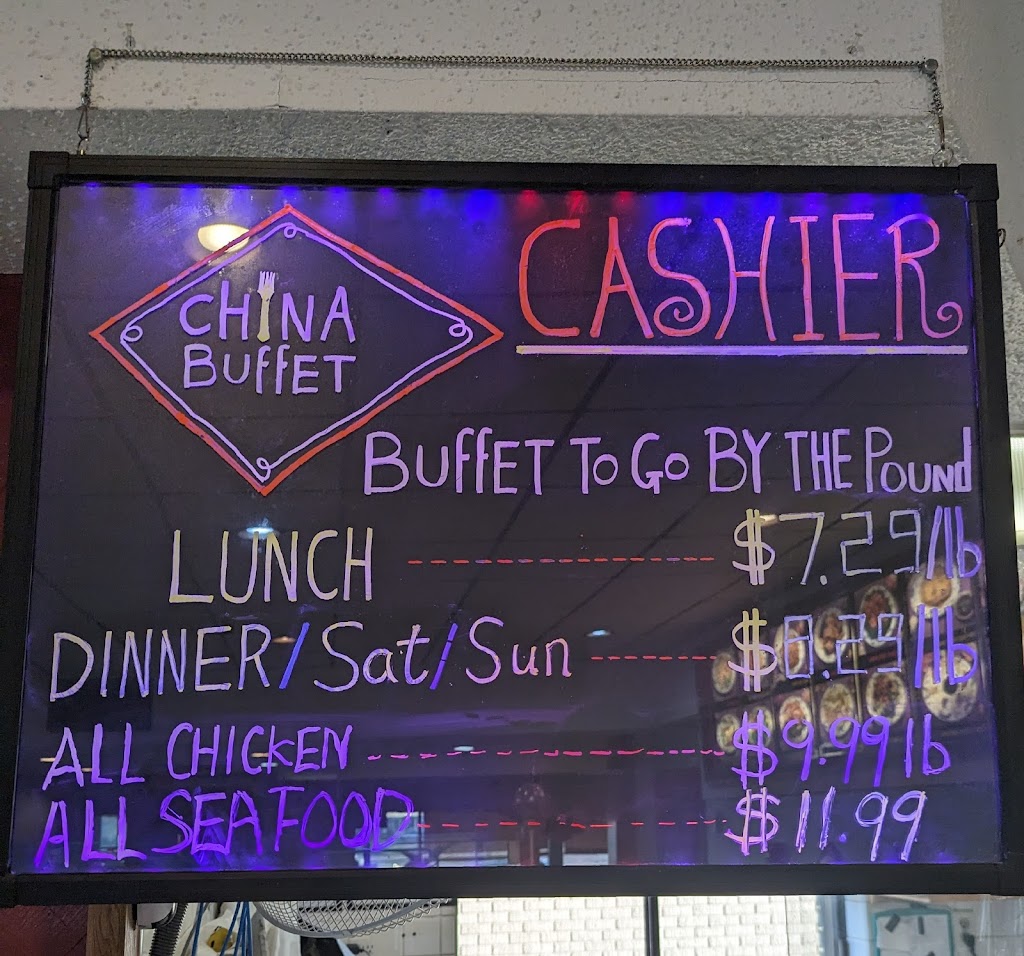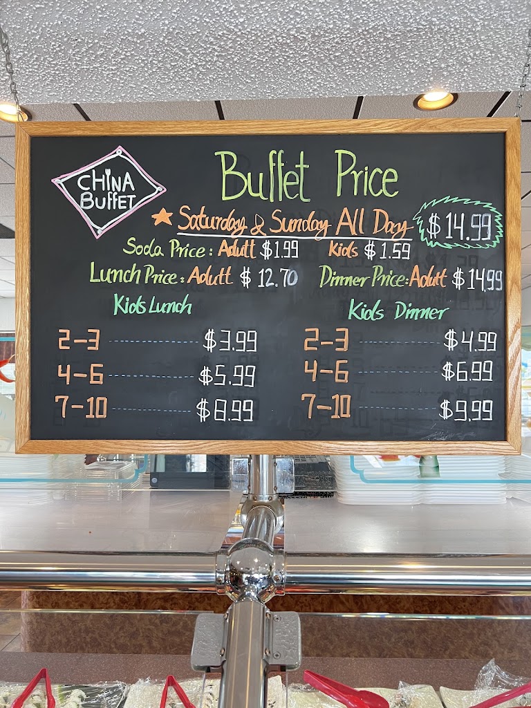 China buffet, like most eat out places is getting a little expensive, but this place is worth it.