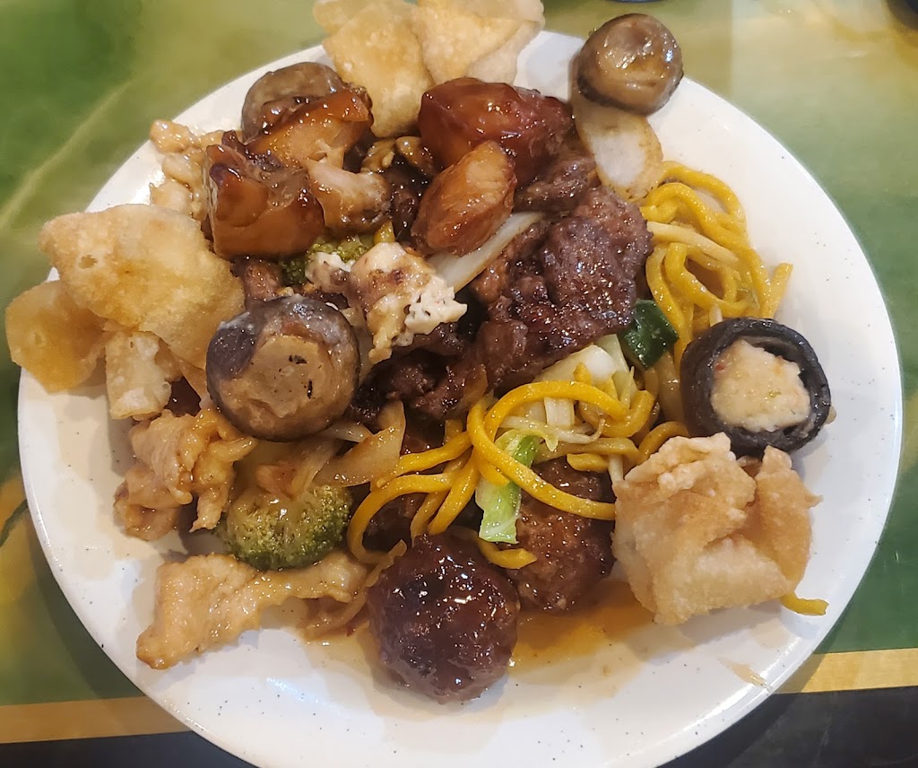 I usually love Chinese food, but the food included in the buffet here was not the greatest. I kept trying to find something good and was repeatedly disappointed. The eggdrop soup reminded me of snot 🤮