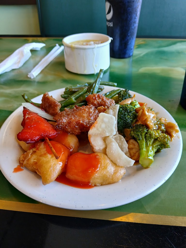 The egg drop soup was good, but the crunchies for it were stale which in-turn gave the soup a stale flavor. The chicken broccoli was good and the broccoli was cooked perfectly. The mei-fun and lo-mein were really good. Fried rice was subpar and lacked flavor but a bit of salt made it better. The General was overcooked a bit and hard on the teeth. Their orange cake was really good and probably my favorite part of the whole experience. Jello was jello-ing and delicious.