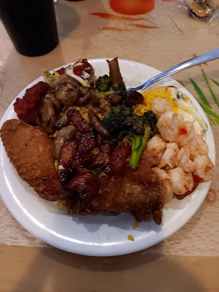 By far the freshest china buffet I probably ever had for a low cost like 15 dallors a person. Muscles,crawfish,general chicken,the veggies market fresh and crisp! The have ice cream and salad bar options and china buffet normal options but risk free and fresh. Oh the fillet fish was delicious..