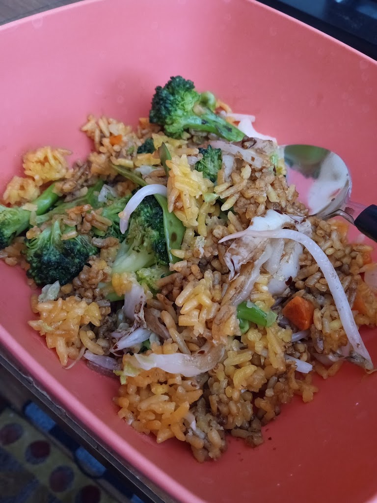 If you are looking for afordable healthy food, this is the place. The large size serves 2 people. And yes, it comes with those chinese's fortune coockies. Brocoli and meat comes with rice as well.
