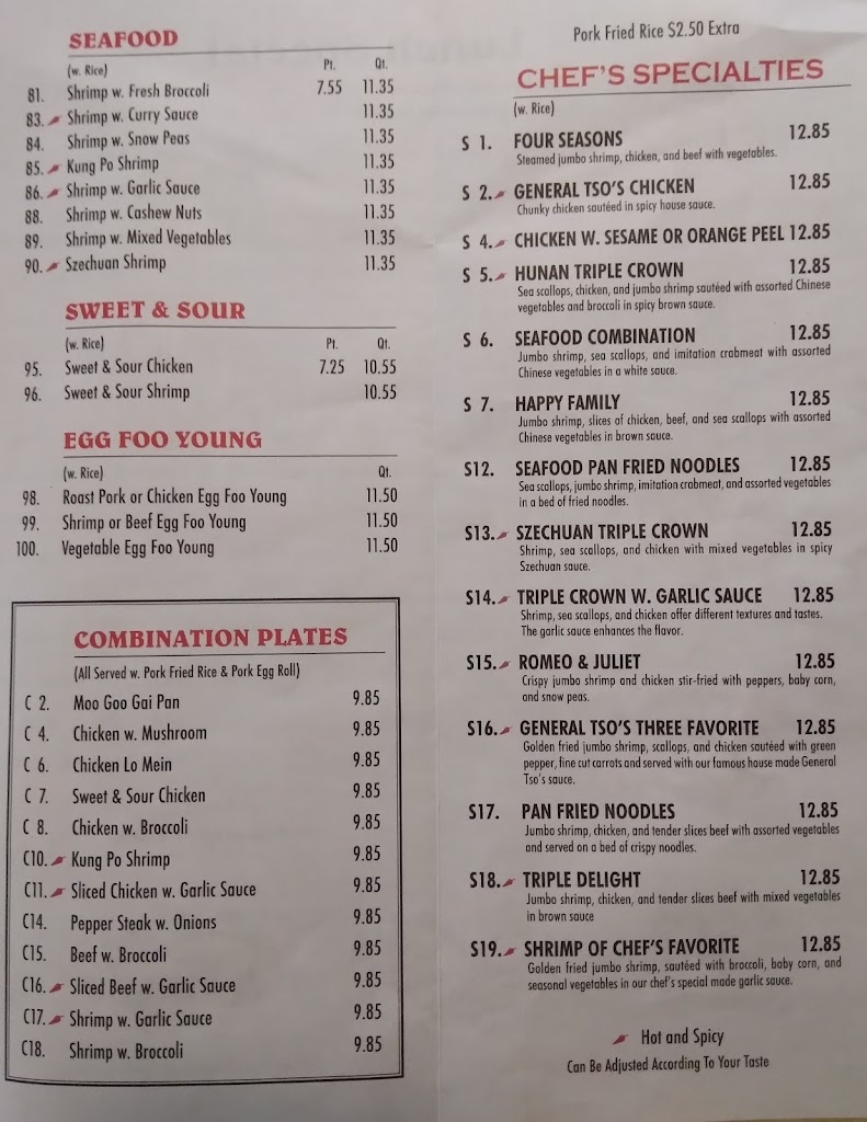Huge portions, excellent food! Chicken and shrimp lunch special is a great deal! Lunch prices are really great, $5-6, can't hardly finish it all. Good sauces, not all taste same, brown sauce very tasty, not just salt. I do avoid their beef as I don't like the texture and I avoid white sauces at all Chinese restaurants as they are usually flavorless.