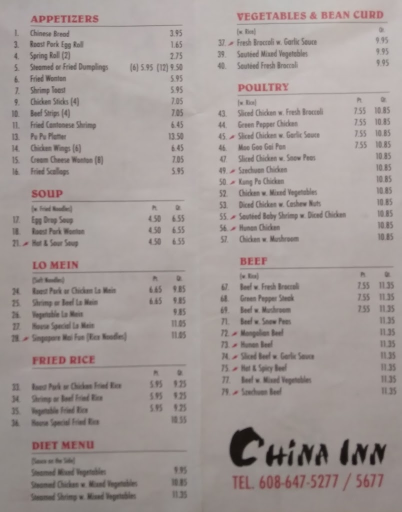 Ultimately though...I suggest skipping China Inn, for someplace where you get better food, for your dollar. The $26 I paid was waaay overpriced, for the food I received.