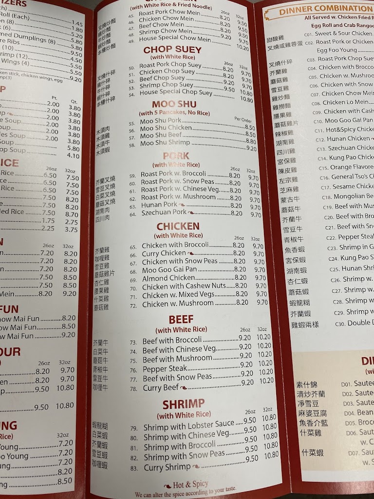 Forgot about this place when we moved to Hartland 8 years ago. The food is awesome, so many shrimp in my Spicy Shrimp, won't be able to eat them all.. The shrimp egg roll was one of the best I've had...I walked in passing through Oconomowoc and stopped in. It took me longer to decide what to have,than them making my food...I would have given 5 stars, but they don't offer brown rice, or steamed options.