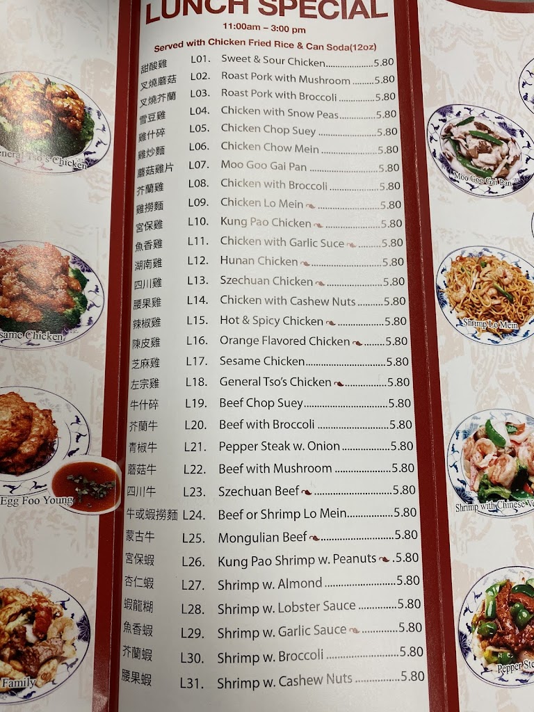 Family owned and operated, American Chinese food. My kids love the heavier fried sesame it sweet sour chicken, fried crab rangoon, etc. Wonton soup and steamed vegetable are quick and light. Low cost lunch specials. Always fast, accurate and friendly.
