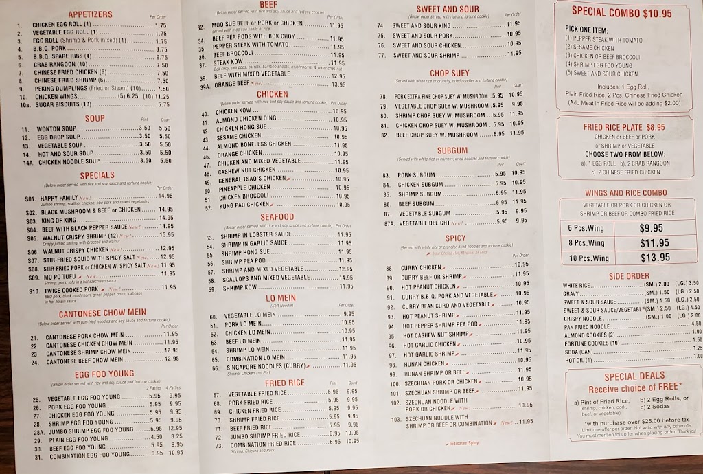 They have excellent beef egg foo young and delicious chicken fried rice. Great value.