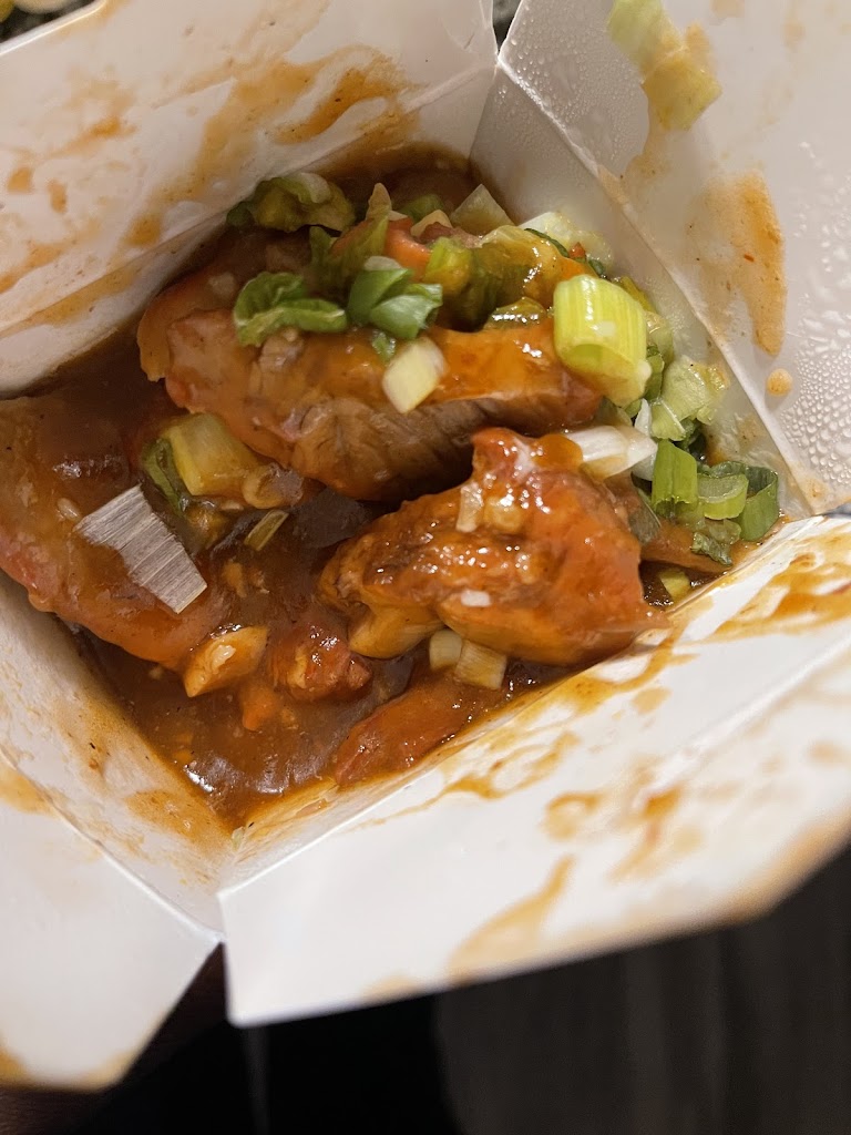 Food tastes burnt chicken taste spoiled and egg roll was nasty.. Really bad food