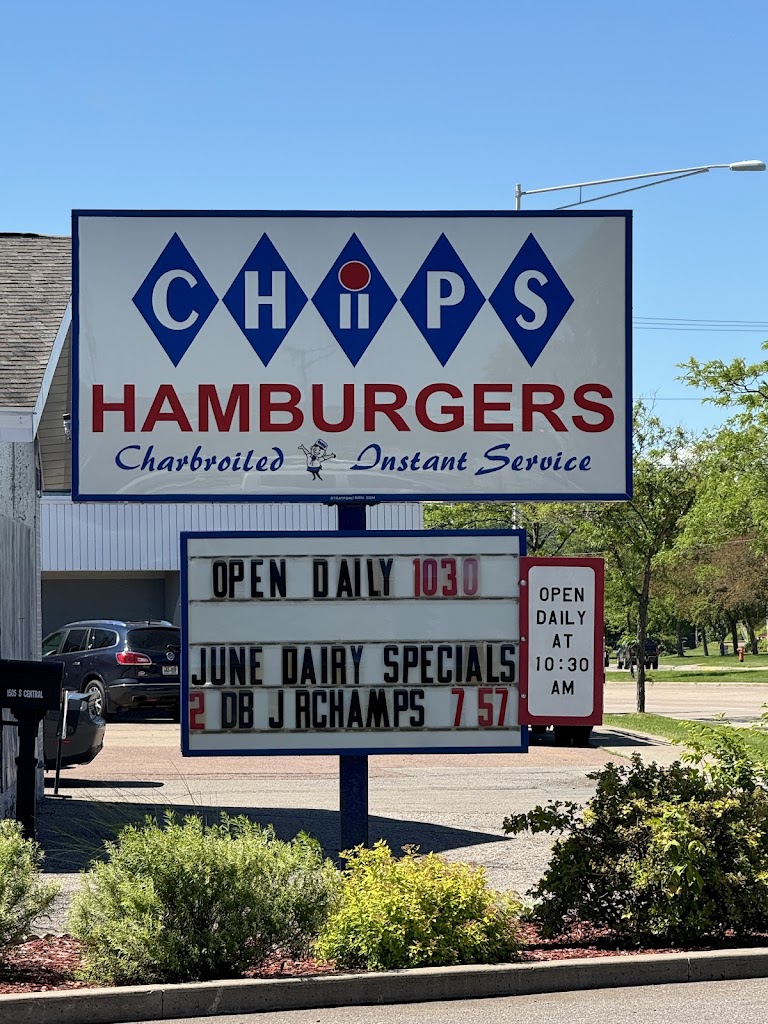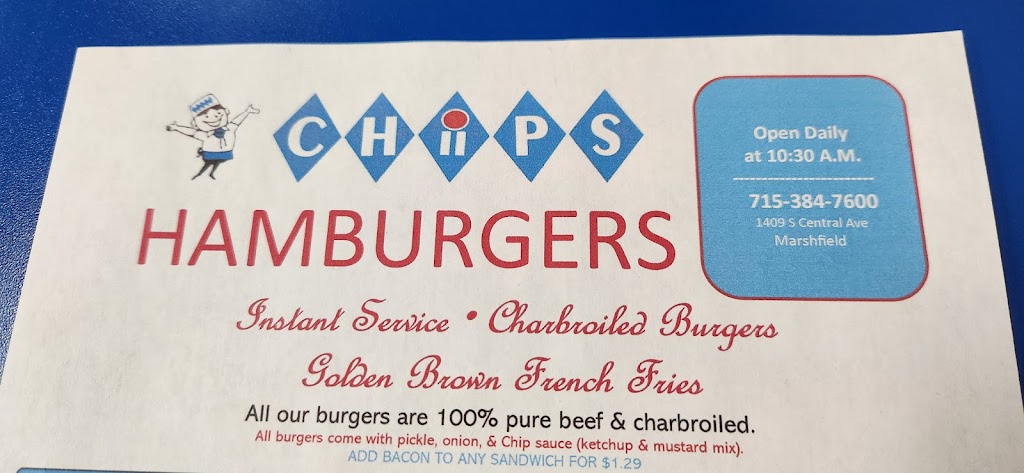Located on Marshfield's growing south side, Chip's Hamburgers has been serving fresh, charbroiled burgers since the 1960's. Our locally-owned, fast-food restaurant offers hamburgers, French fries, fish and chicken fillets, roast beef sandwiches, onion rings and cheese curds, shakes, floats, ice cream cones, and more. We offer indoor seating and our convenient drive-thru for fast service, and our value menu and specials offer great taste at a great price. Come taste the difference!