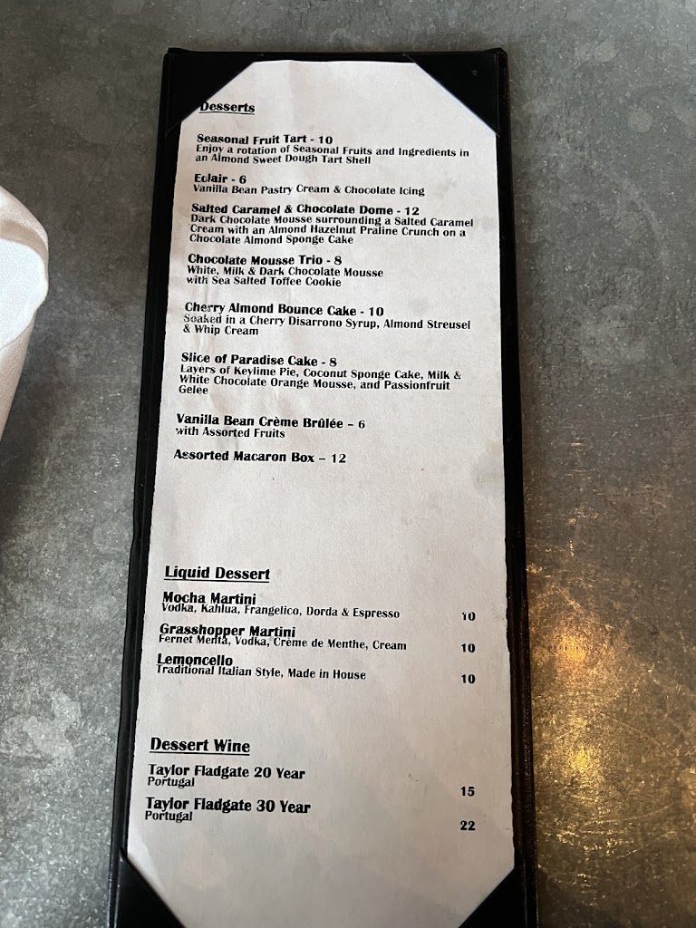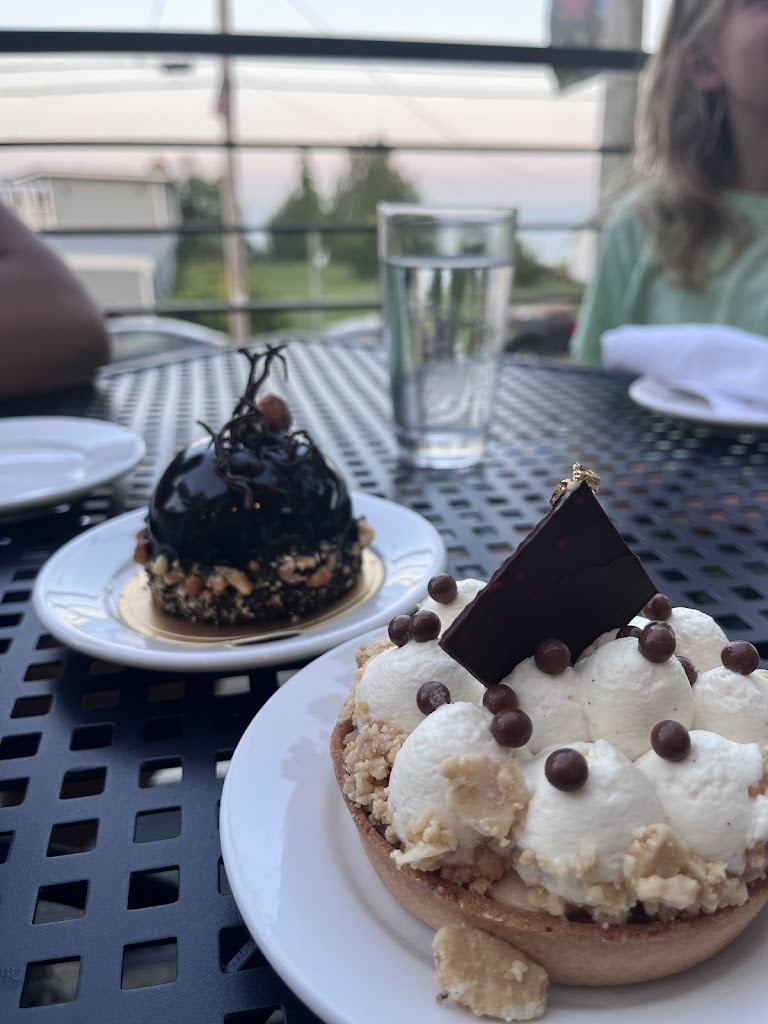 We stopped here for after dinner, drink and desserts with the family and sat on the patio. It was beautiful overlooking the water view- you can tell it’s a classy restaurant. We had the banana something or other that was so good - fresh and a variety of textures. I can’t explain it, but it was very good. We also had the chocolate dome which is beautiful and just everything you want it to be. Our service was also really great and refreshing. we were not rushed and had a really nice experience. place was clean and the bathrooms were cool.