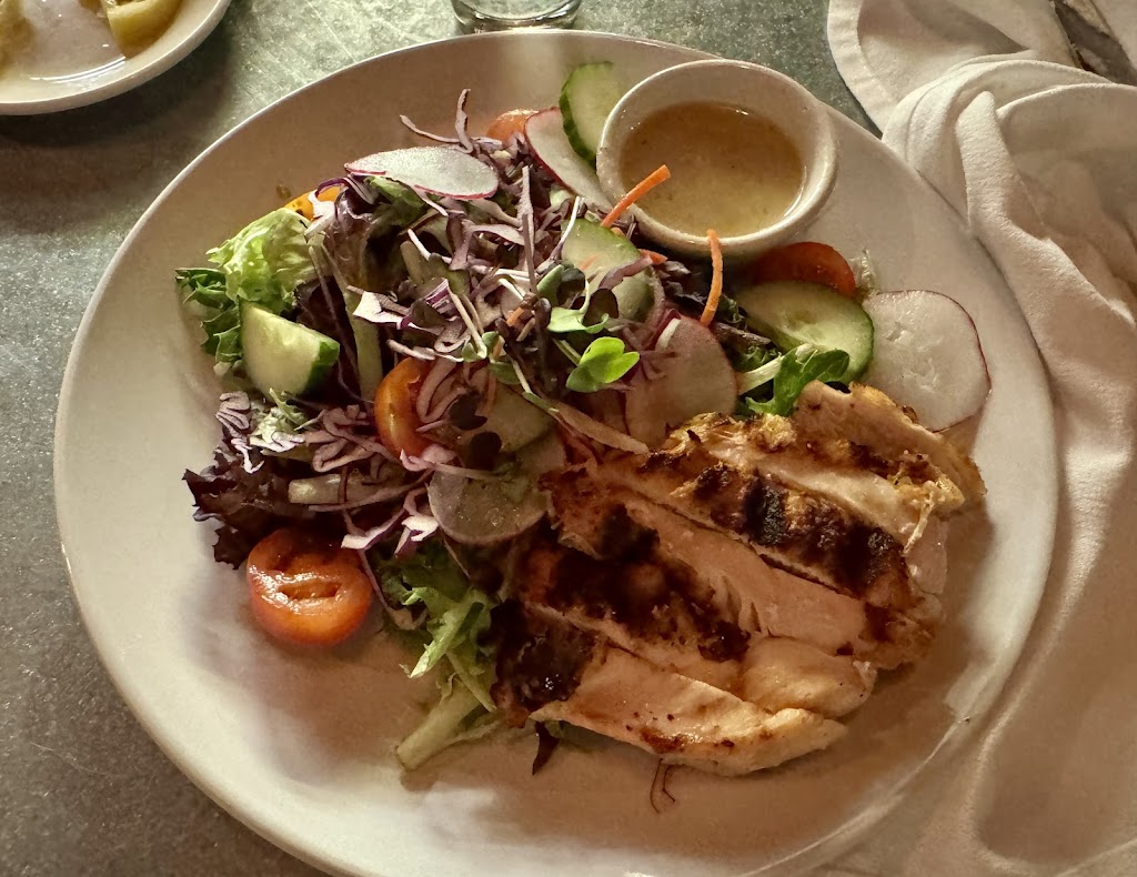 By the time the soup cooled, my salad had already arrived. The salad was great- the greens were fresh, and the chicken was juicy and perfectly cooked. The only downside was the dressing was very acidic. I was glad I got it on the side. One of my friends ordered the same salad with the dressing mixed in and didn’t like it as much.