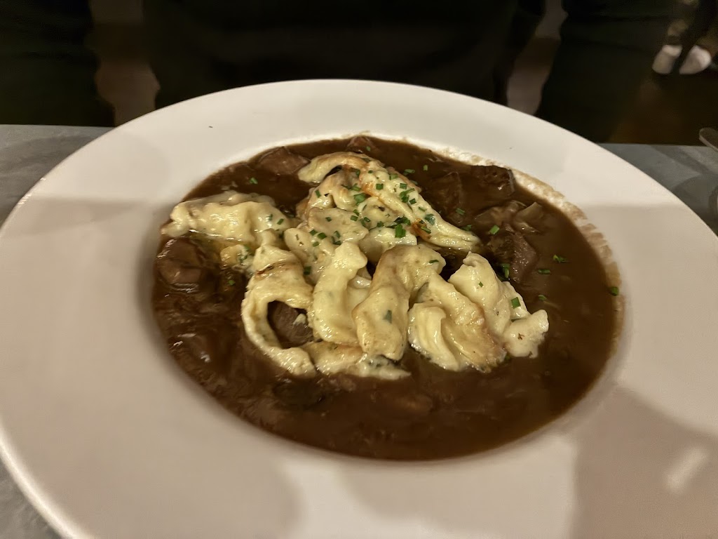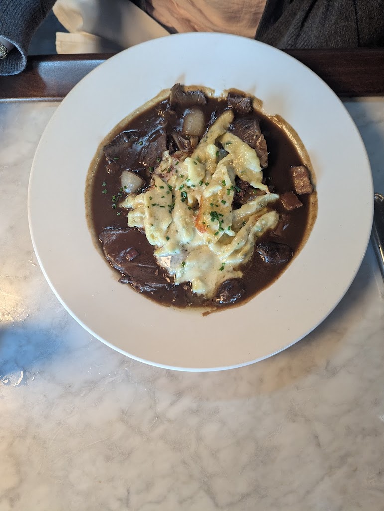 Ordered beef cheeks bourgignon from regular menu and aged sirloin papardelle as a special. The former wonderfully savory and the latter fragrant with herbs. We did a splitsy and really enjoyed both. Bread service good with herbal butter a bit too salty. Lotsa stairs entryway. Good service from host stand to final check.