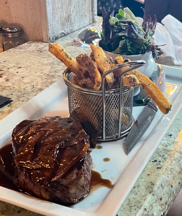 Wow! Best meal we've had in awhile! This was a culinary experience and treat! Always order the fish of the day (quote from fabulous waiter Carlton) and it was outstanding. Duck Frites, Chicken Marsala, Fish of the day Striped Bass..wow!! Oysters were the best we've ever had. Fries..holy cow..outstanding. Carlton really is a professional. Desserts and beverages were great and atmosphere awesome. Can't say enough.